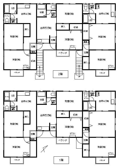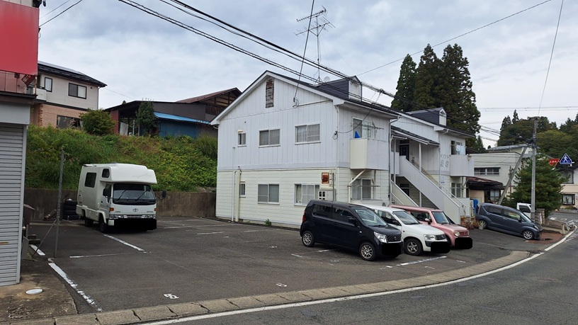都市計画区域内 非線引き 第1種住居地域 建ぺい率60% 容積率200% 建築基準法第22条【土地面積】公簿562.91u/宅地【接道】南側公道/幅員6.3〜7.1m/28.5m接す【建物面積】延241.8u/1階120.9u/2階120.9u【専有面積】最小38.1u/最大41.4u/6世帯【設備】電気(東北電力)水道(公営)排水(公共下水)ガス(プロパン) 土地はアパート後ろの擁壁及び法面も含みます