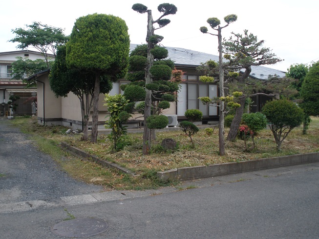 売主にて地目変更と測量を行い引渡します。現状渡しにつき建物や造作物の解体、庭木の撤去等は全て借主負担となります。